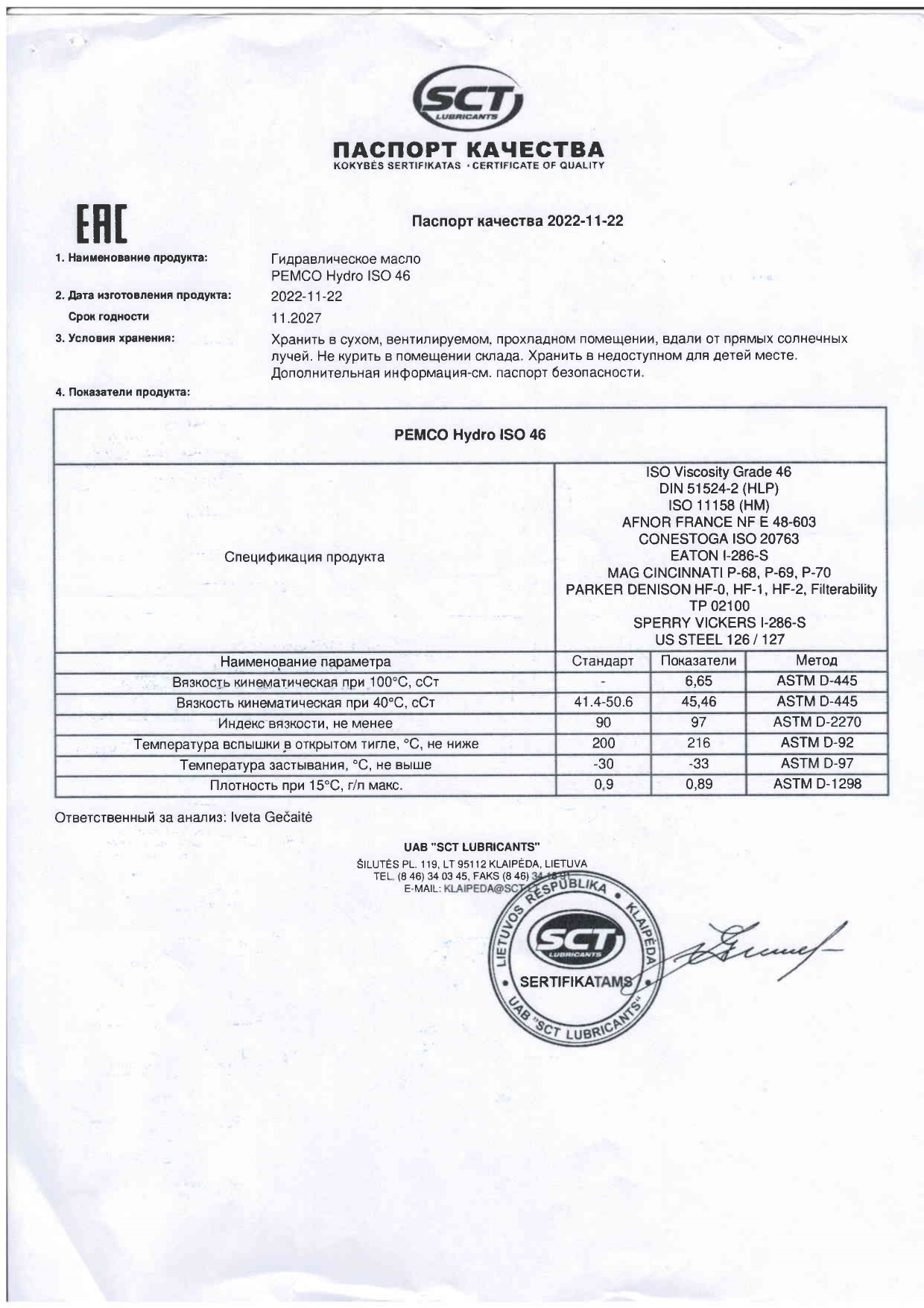 Рекомендуется использовать в качестве рабочей жидкости промышленных гидравлических систем: