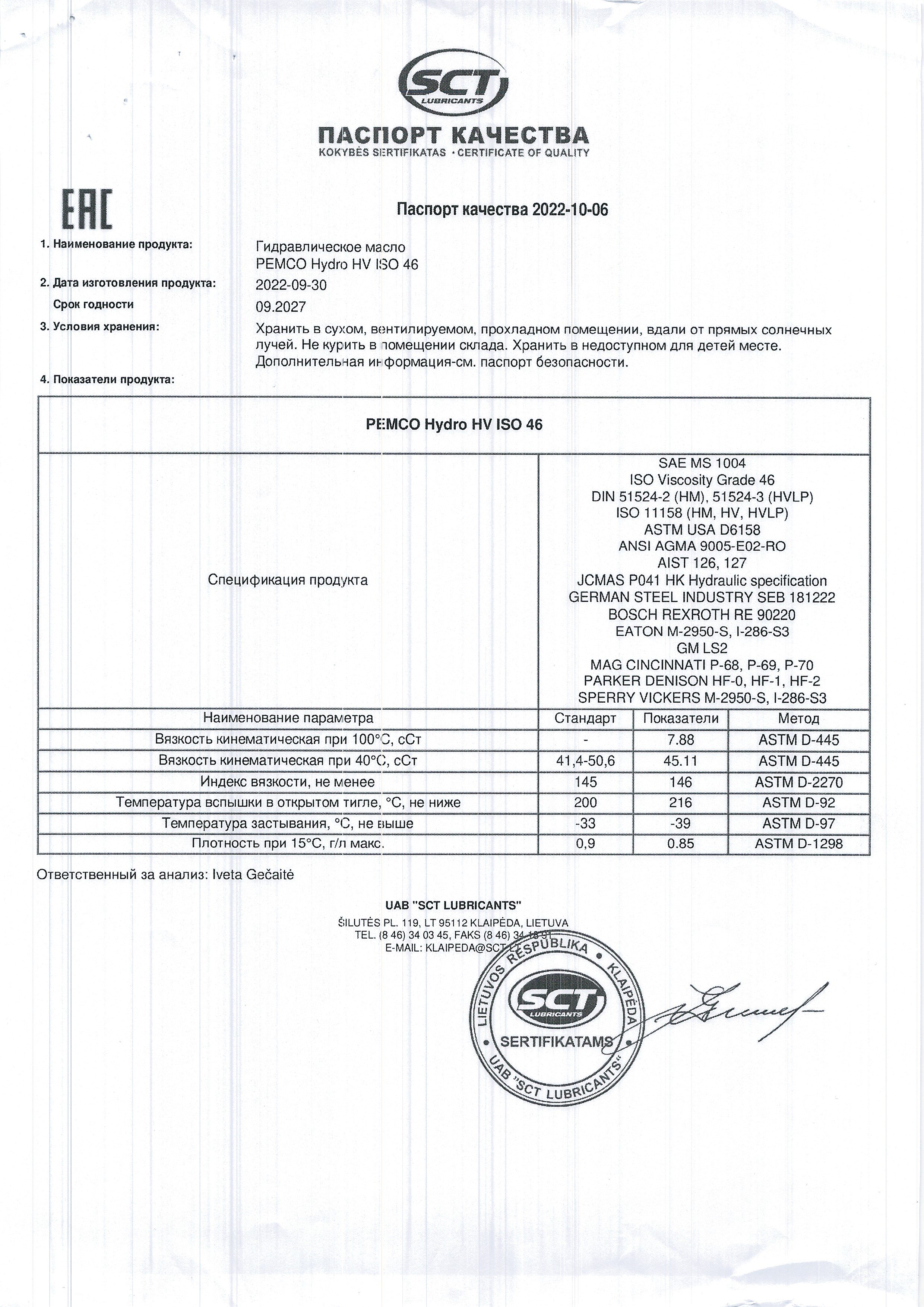 Рекомендуется использовать в качестве рабочей жидкости промышленных гидравлических систем, где требуется применения масла соответствующего стандартам DIN 51524 часть 3 (HVLP) или ISO 11158 (HV).