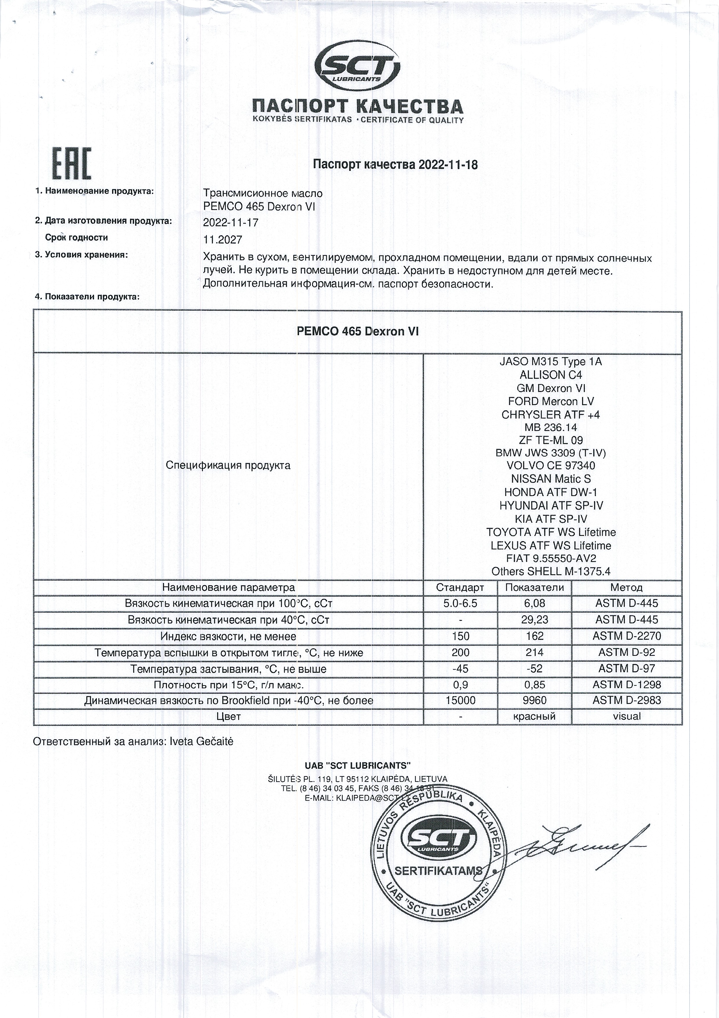 Трансмиссионное масло, предназначенное для автоматических коробок передач, гидравлических систем рулевого управления и гидравлических сцеплений автомобилей, для которых предписано масло, соответствущее спецификации GM Dexron II D. Отличается хорошими низкотемпературными и антиокислительными свойствами.