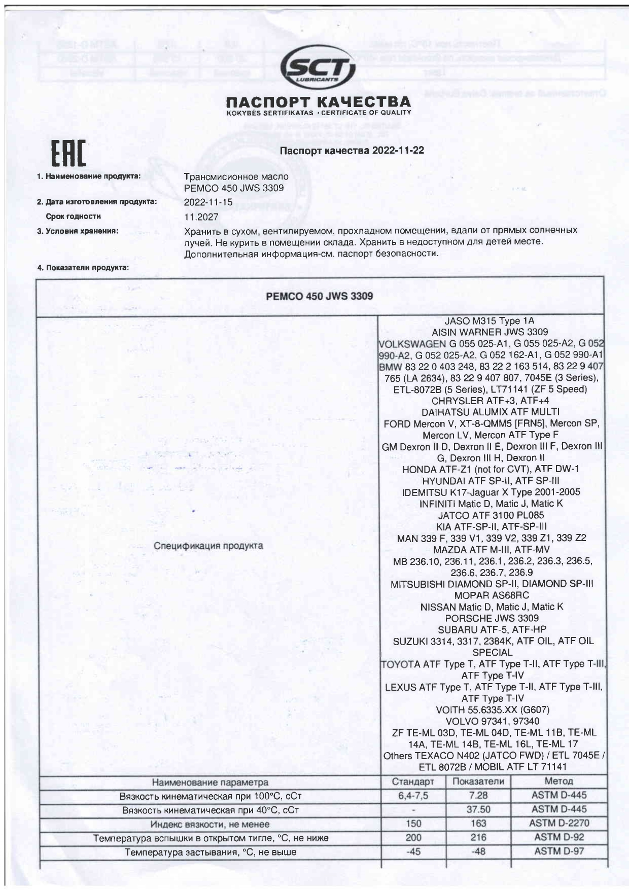 Обеспечивает бесперебойную работу АКПП, гарантирует минимальный износ, продолжительный срок службы трансмиссий и экономию топлива. Разработано на основании требований компании AISIN WARNER.