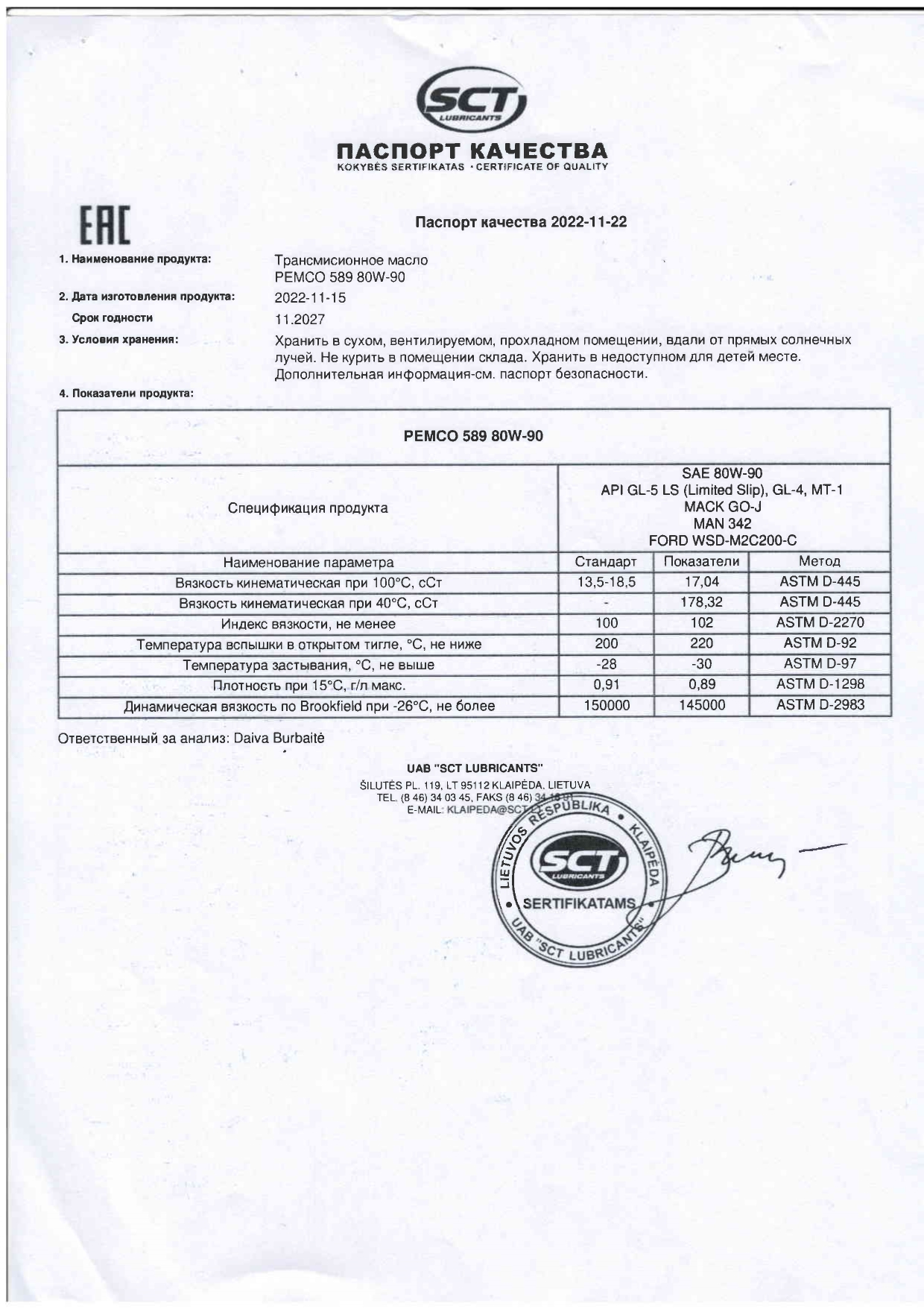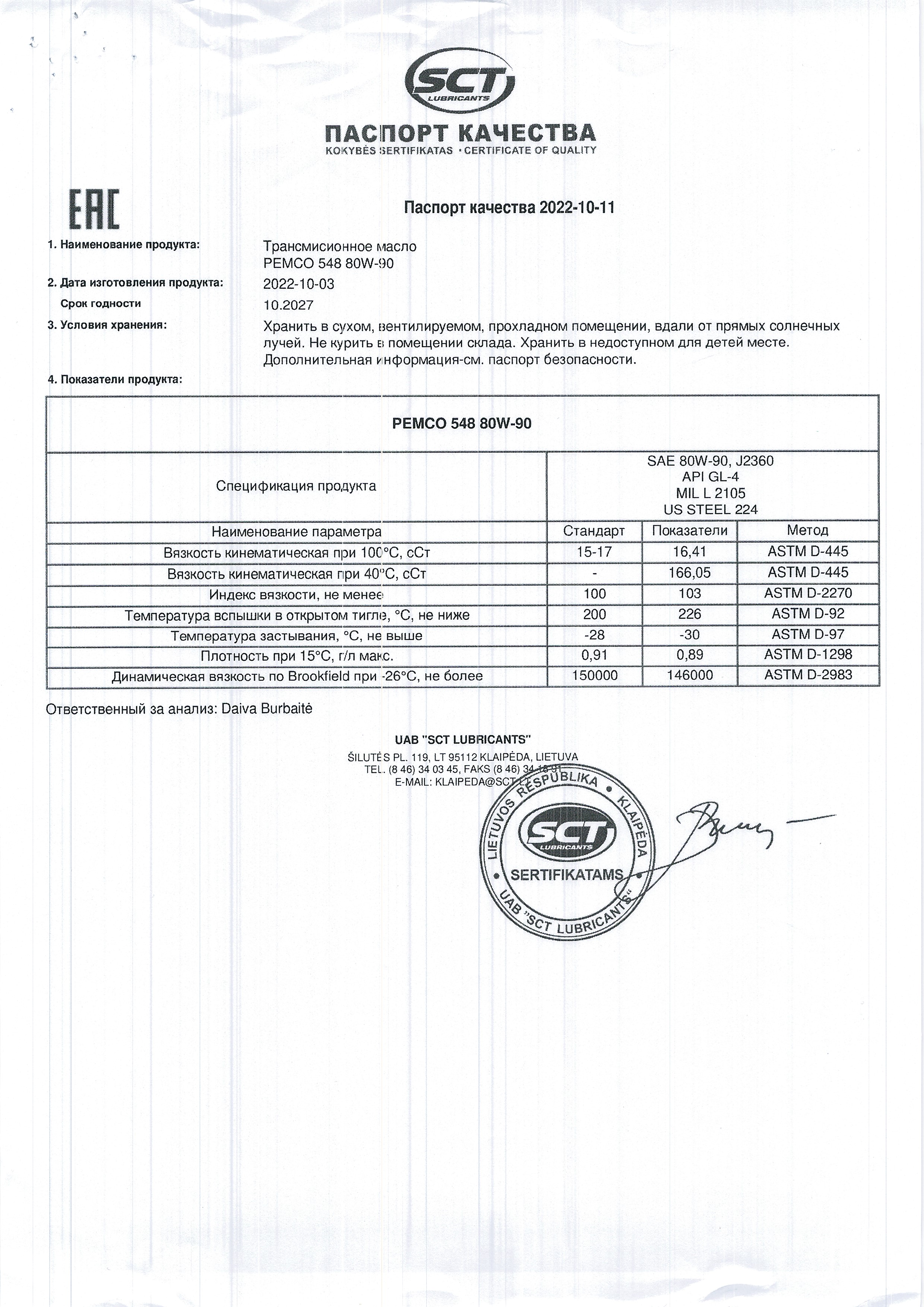 Класс вязкости SAE – 80W-90