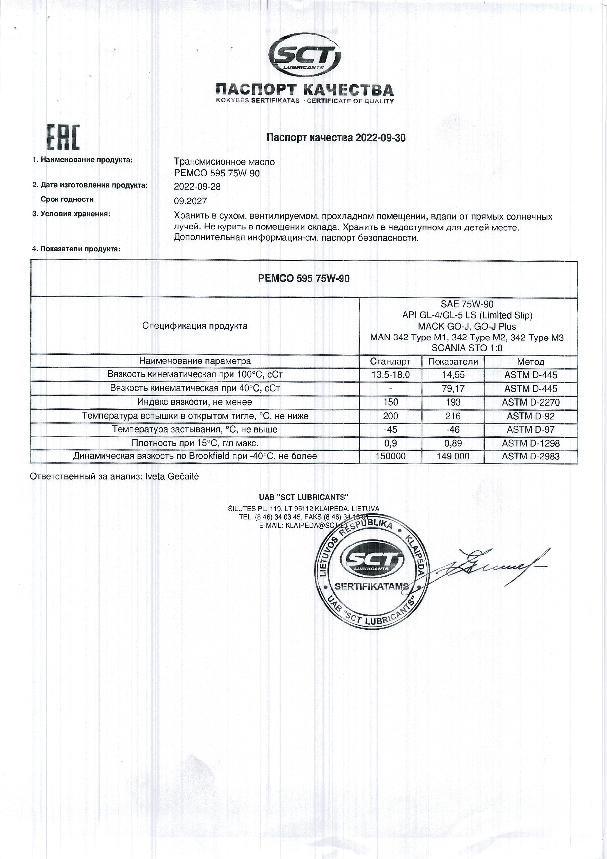Класс вязкости SAE – 75W-90